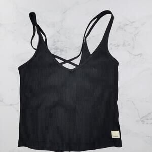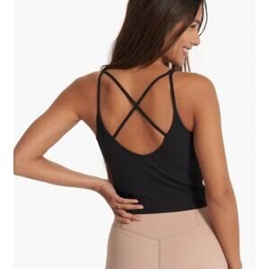 VUORI Black Ribbed Crop Tank Small EUC