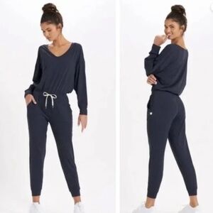 Size Medium... in great condition !! Vuori Lux Long Sleeve V-Neck Jogger Jumpsuit in Midnight Heather Blue.