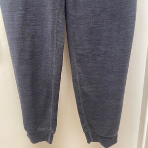 Vuori Lux Long Sleeve V-Neck Jogger Jumpsuit in Midnight Heather Blue. Retails for $108.