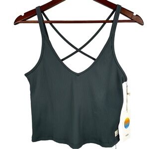 NWT women’s size L VUORI Rib Crop Tank in Stone (greyish-slate blue)