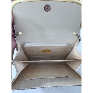 Crafted with an eye for style and functionality, the "VUTRUBA" 1960 vintage crossbody purse is a testament to timeless fashion. With its durable metal exterior and a sleek metallic finish, this piece exudes elegance while promising longevity. The white and cream color palette offers a versatile look that complements any ensemble, making it a perfect accessory for women who appreciate a touch of class. Equipped with a convenient snap closure and a sturdy cross-body strap, this bag ensures your essentials are secure and within reach. The purse's unique design is not just about its appearance; it's a statement piece that adds a chic detail to any outfit, whether you're out for a casual brunch or a sophisticated evening event...23" Long Includung Chain, 9"Wide ,6.5"Tall Body Of purse