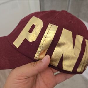 VVictoria's Secret Pink Hat Baseball Cap, Burgundy/Ruby/Gold Side Logo