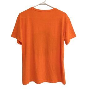 Comfy, casual, bright orange San Francisco short sleeve graphic tee t-shirt with iron-on graphic of iconic VW Volkswagen Bus and surf board. Great lightweight summer tee for beach, vacation, or other summer fun. Double Stitch.