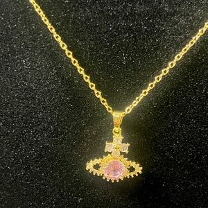 VW inspired small orb with pink stone gold plated necklace - extendable chain