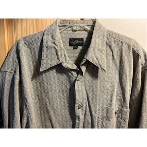 Va Bene Vintage Men’s L Gray Check Long Sleeve Button Down Cotton Shirt