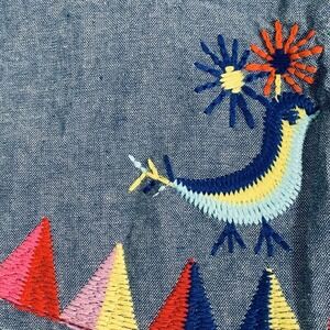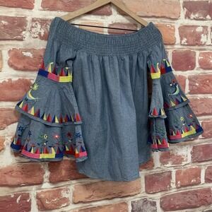 Va Va By Joy Han Top Women's Small Blue Denim Boho Embroidered Bird Blouse