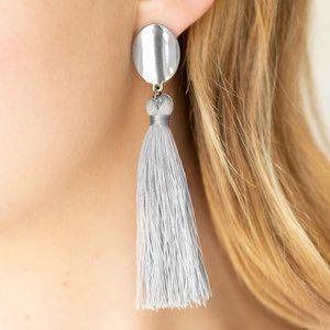 Va Va Plume - Gray Fringe Post Earrings By Paparazzi