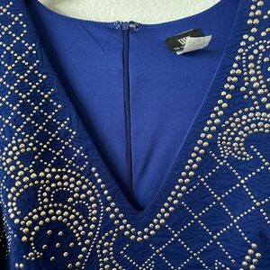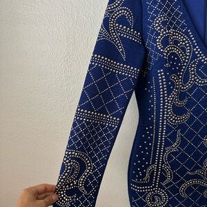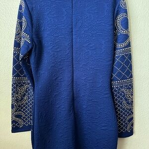 VA VA VOOM Royal Blue Silver Studded Long Sleeves Mini Bodycon Medium Dress