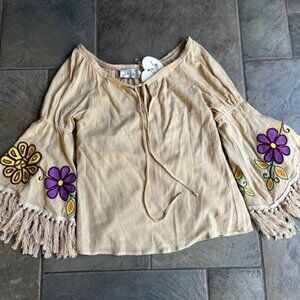 VaVa by Joy Han Embroidered Flowers Bell Sleeves Top Women's Size Small (2-4)