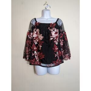 VaVa by Joy Han Embroidered Magnolias Mesh Off Shoulder Top.