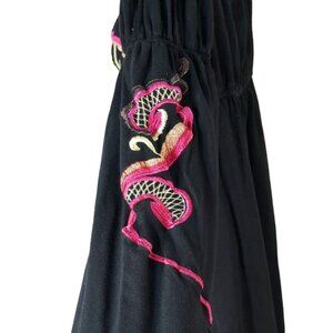VaVa by Joy Han Mini Shift Dress Black Small Bishop Sleeve Boho Embroider Floral