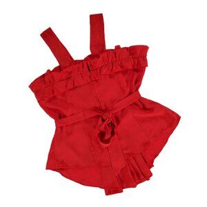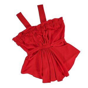 🔥Tags- waist tie, adjustable waist, back zip closure, pockets, gathered, ruffled, red, dressy