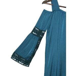 VaVa by Joy Han XS Teal Green Long Sleeve Cold Shoulder Flared Sleeve Dress