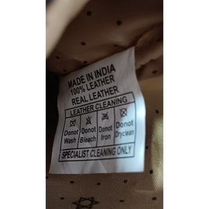 Adjustable strap. Upper zip closing. Outer zip pocket. Leather exterior shell material. Inner fabric lined. India. Western. Boho. Minimalist. Modern. 7.75"H x 5.75"W.