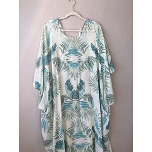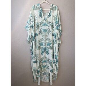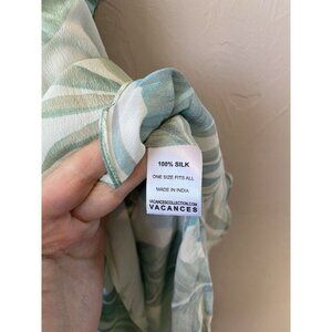 Vacances Beach Swim Coverup Palm Leaf 100% Silk Cream Caftan kimono resortwear