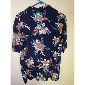 Vacancy Co Men's Button Down Shirt Dark Blue Hawaiin Print Size XXL 2XL