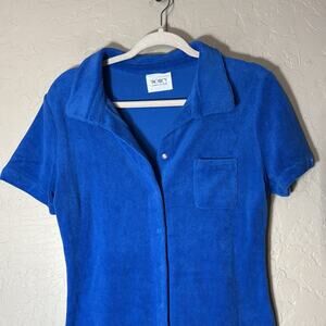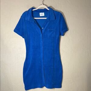 Vacancy Daylight Terry Mini Dress cobalt size 8. Vacation terry cloth fabric dress. Snap front. Preppy style. Country club or pool wear. Resort wear. Size 8 approximate measurements