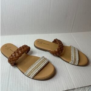 Vacation Brown and Tan Size 8.5 Strap Braided Slide Flat Sandals Boho Casual