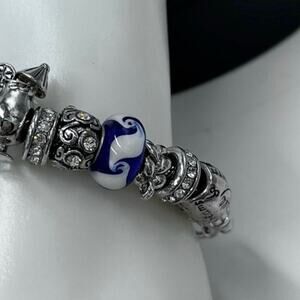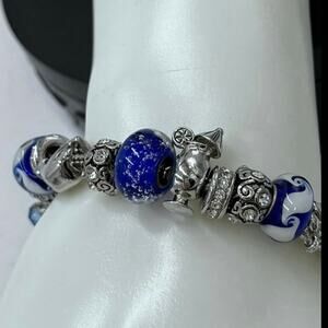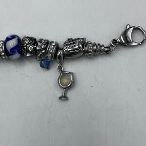 Vacation Cruise Ship Anchor Pina Colada Wine Blue White Euro Charm Bracelet
