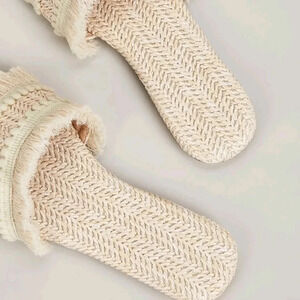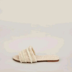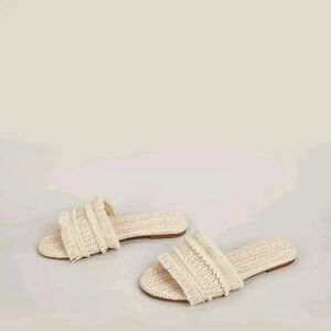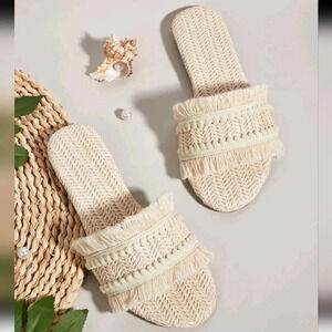 Vacation Outdoors Flat Slippers for Women, Fringe Decor Plain Straw Open Toe