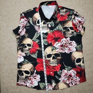 Get ready for your next vacation with this brand new stylish casual men's shirt. The skull floral pattern and short sleeves make it perfect for a comfortable, yet edgy fashionable look. The button-up closure adds a classic touch to the shirt. This shirt is made for men who wear a size Large. Made from high-quality polyester, this light weight shirt is comfortable and durable. This shirt is perfect for men who want to turn heads and look good without sacrificing comfort.