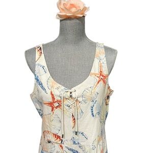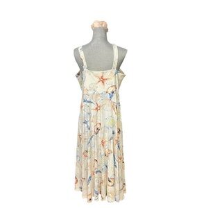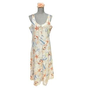 Vacation Summer Beach Resort BOHO Cruise Cotton Seashell Print Midi Dress XL