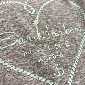 Bar Harbor Main Acadia inside of a rope heart-iron on. Some cracking on the graphic as shown.