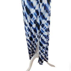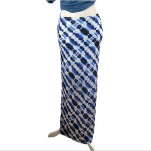 Vacay brand blue and white super soft and lightweight maxi skirt with side slits on both sides. lined underneath just above the knees