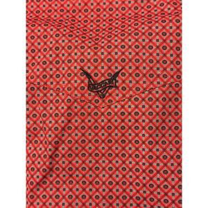 Vaccari Men's Long Sleeve Red Geo Print Pearl Snap Shirt - Size M
