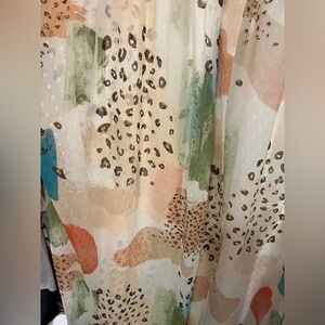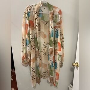 beautiful kimono in a fun animal print and color story. Does not button/close. Versatile and great for all seasons. Perfect as a bathing suit coverup too!