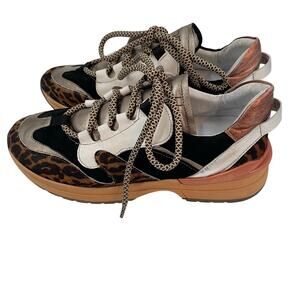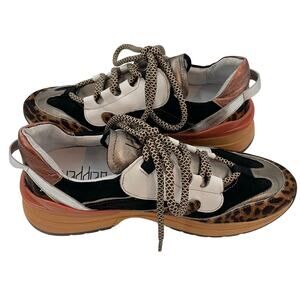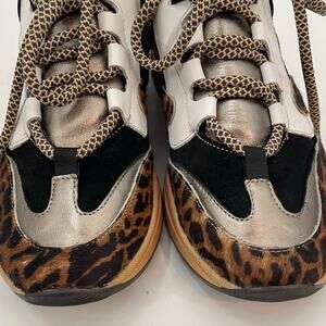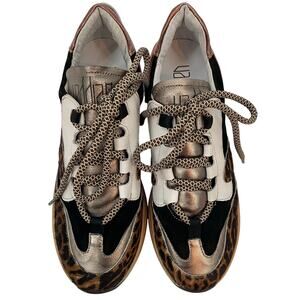 Vaddia 38 / 7.5 Calf Hair Leather Sneakers Metallic Cheetah Print
