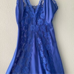 Vae Mode | Vintage 80s Cobalt Blue Lace Front Long Slip Dress Lingerie Nightgown