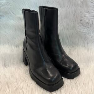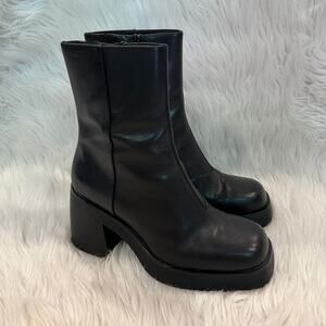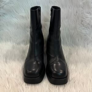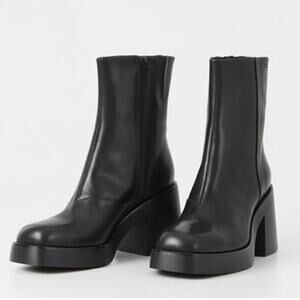 Vagabond Brooke Boots Leather Square Toe Zip Chunky Block Heeled Platform Black