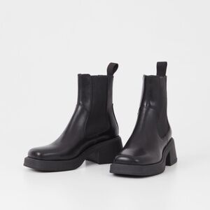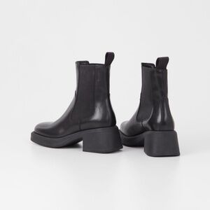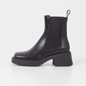 Dorah is the contemporary Chelsea boots for everyday wear. The style is crafted in black leather featuring a square-toe shape, elastic side panels and pull-on tabs. The chunky block heels measure 59mm.