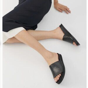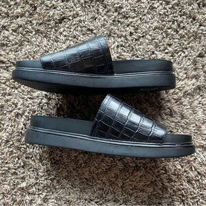 Vagabond Effie Black Croc Embossed Leather Platform Slide On Sandals EUC Size 36