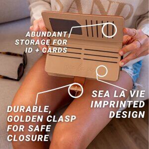 The Vagabond Goods Wanderlust Brown Wallet is the perfect wallet for everyday use. Its monstera leaf detail on the tan brown outer gives it a tropical vibe that I adore. Inside, the light brown color offers a nice contrast. This wallet has plenty of room for my cards and cash. Plus, the Sea La Vie embossed design adds a charming touch, making it more than just a practical accessory—it’s a little piece of wanderlust in my pocket. Brand new with tags.