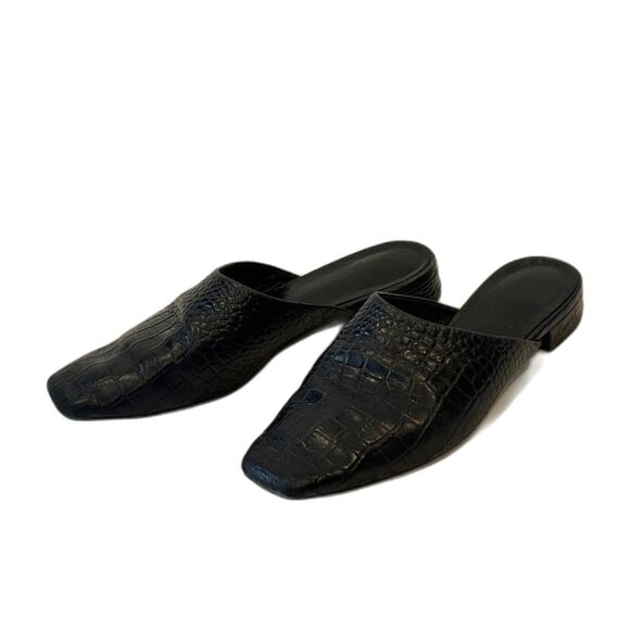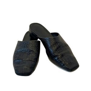 Vagabond Shoemakers Black Leather Square Toe Mules Size 37 Crocodile Embossed