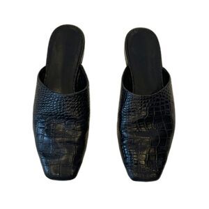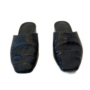 Vagabond Shoemakers Black Leather Mules Size 37 Crocodile Embossed