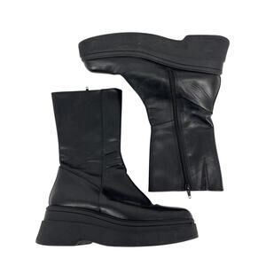 cuz you’re classic and chic. These leather mid-high shaft boots have chunky platform soles, side zip closures, and squared toes.