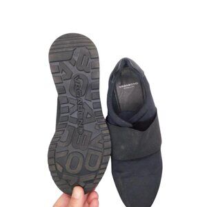 Vagabond black stretchy loafers with rubberized soles , slip on style with leather accents- super comfy
