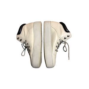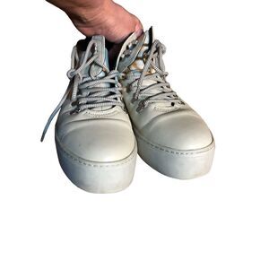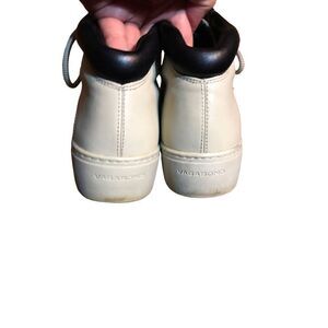 Vagabond Ladies' Shoes Size 39 Taupe/Gray Ankle Boots with black around back of ankle. High tops, lace ups. Leather upper and rubber platform. Motto style boots.