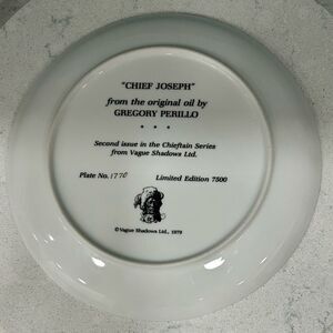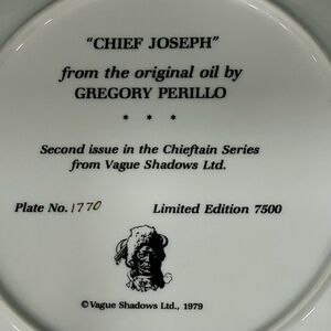 Vague Shadows Ltd Chief Joseph Collector Plate 1979 Perillo “Chief Joseph” Chieftain Series