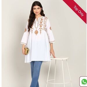 VAHSON White and Brown Embroidered Pure Cotton A-Line Kurti Size Large New with Tags