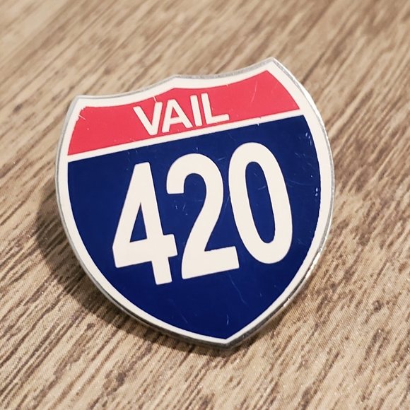 Classic interstate style with a ski bum twist. Measures roughly 1" by 1".