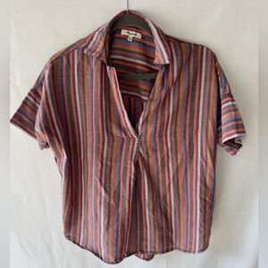 Cotton / polyester blend retro style shirt. No size on the clothing but fits like a large.
