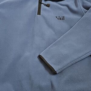 Cozy blue pullover quarter zip fleece with Vail logo. Perfect for casual wear.