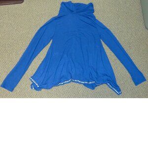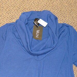 *Vain Shirt Blue sz Large Long Sleeve Cowl Neck Shark Bite Hem