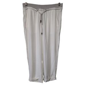 Vakko Pants Women Size S White Sport Cuffed Side Rhinestone Cropped Trousers