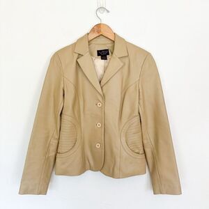 Vakko VS2 Women’s Vintage Cream Tan Lamb Leather 3 button Moto Blazer Coat
