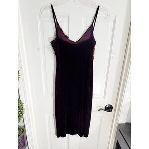 Vakko Women's Purple Velvet Sleeveless Dress Sequins V Neck Spaghetti Strap Small